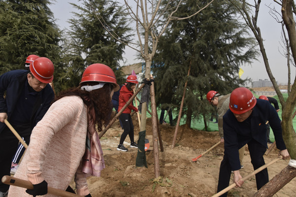 一到植樹現(xiàn)場,所有黨員干部都拿著鐵鍬,三四人一組,有的扶苗,有的培土,有的踩實(shí),有的澆水,大家都充滿激情,鼓足干勁,相互配合,栽下一株株樹苗,植下一片片新綠,現(xiàn)場呈現(xiàn)出一片熱火朝天的勞動場景。為確保新樹栽種的成活率,專業(yè)人員在植樹現(xiàn)場進(jìn)行技術(shù)指導(dǎo),確保做到保質(zhì)、保量、保成活。經(jīng)過不到兩個(gè)小時(shí)的努力,雪松、白玉蘭、金枝槐、紅碧桃等43棵樹木全部栽種完成。