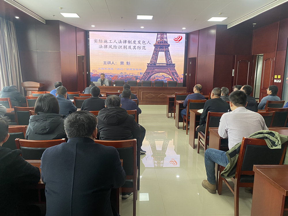 本次培訓(xùn)邀請了上海市建緯(鄭州)律師事務(wù)所栗魁主任進(jìn)行授課,主講的內(nèi)容是《實(shí)際施工人法律制度發(fā)包人法律風(fēng)險(xiǎn)識別及其防范》。本次培訓(xùn),栗魁主任從實(shí)際施工人制度的來源對發(fā)包人的多重風(fēng)險(xiǎn)及生成邏輯進(jìn)行了深入淺出的講解,又結(jié)合《最高人民法院關(guān)于審理建設(shè)工程施工合同糾紛案件適用法律問題的解釋》對相關(guān)法律問題進(jìn)行詳細(xì)解讀和分析,使與會人員對建設(shè)工程施工合同糾紛法律訴訟中的有關(guān)問題有了深刻的理解。